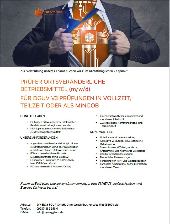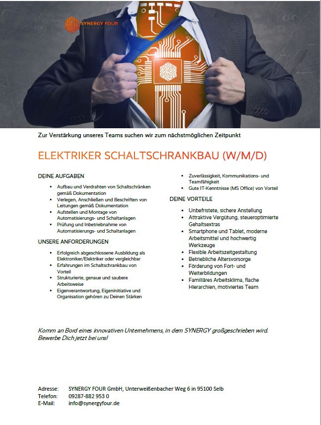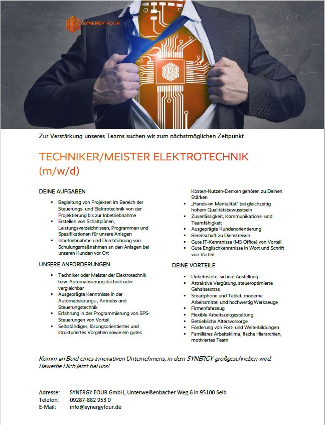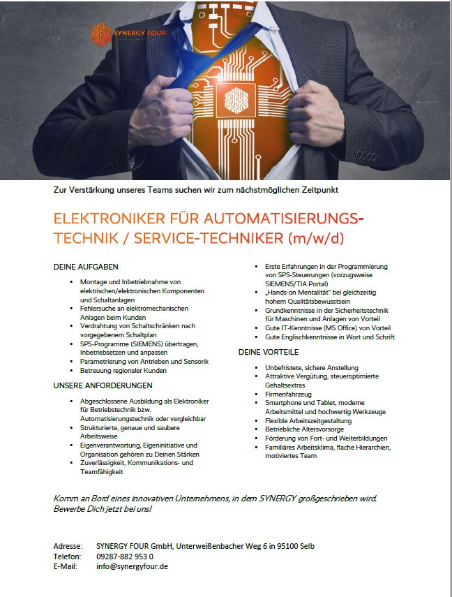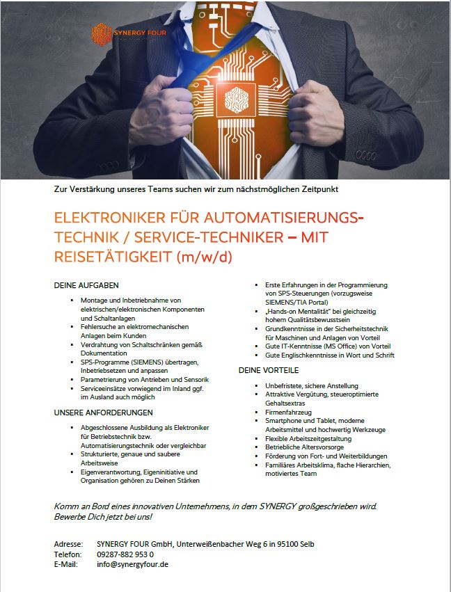 Wir, SYNERGY FOUR, sind ein junges und dynamisches Unternehmen und immer auf der Suche nach Teamplayern, die uns durch Ihre Kreativität, Fachkompetenz und Hands-On-Mentalität weiterhin voranbringen.